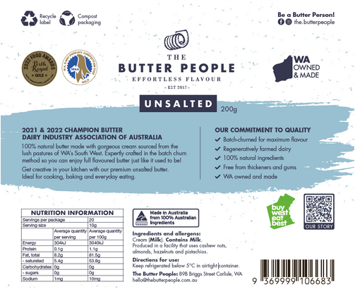 💛 100% WA Owned and Operated - Kylie & Kris are Perth locals who have been making butter for over 12 years.